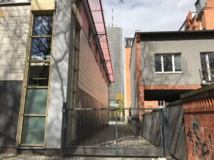 - Starte die Audiowiedergabe, folge den Anweisungen und gehe in Richtung Großbeerenstraße (Blauer Pfeil auf dem Foto).
