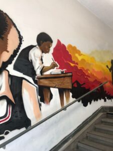 Im vergangenen Schuljahr erarbeiteten die Lehrkräfte Katrin Fabricius, Alper Yildiz und David Reuter gemeinsam mit den Schüler*innen des 11. Jahrgangs einen interaktiven Rundgang durch die Hector-Peterson-Schule. Die Jugendlichen erschlossen sich im Projekt ihre eigene Schule ganz neu und unter neuen Gesichtspunkten, es entstanden neben den neuen Eindrücken viele Texte und Bilder, die verarbeitet wurden.